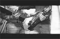 Suchen in den Plattensammlungen nach passenden Musikstücken.